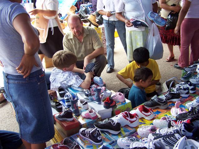 Buying tennis shoes for Juan Miguel at the clothing tianges (market) in Huajuapan.