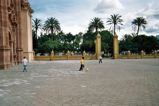 Daniel, Juan Miguel, and Brian playing ball in the cathedral courtyard near the zocalo in Huajuapan.
