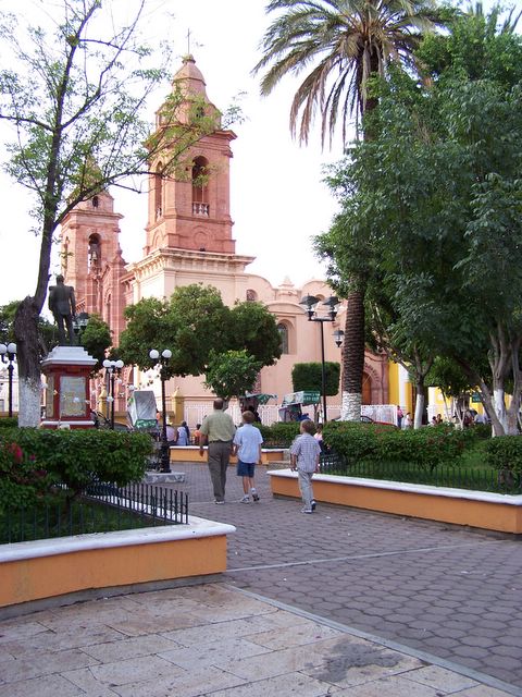 Todd, Brian, and Daniel walking through the zocalo in Huajuapan.