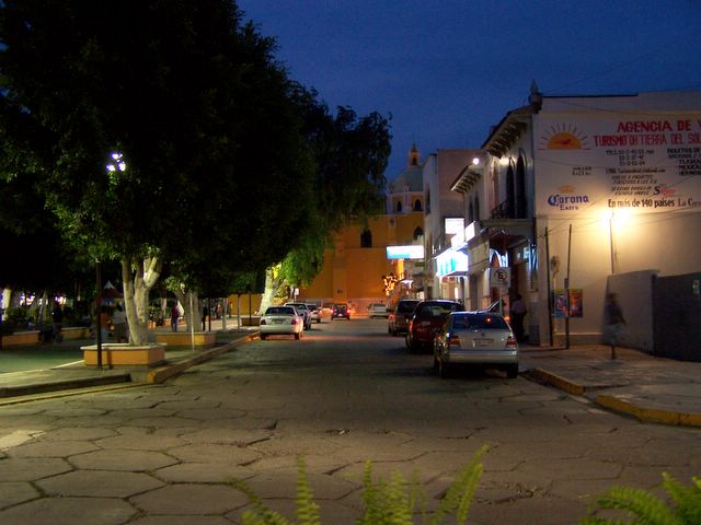 A view of the zocalo outside the Garcia Peral Hotel restaurant in Huajuapan.