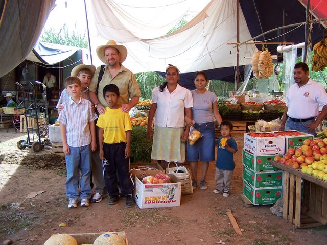 Daniel, Brian, Juan Miguel, Todd, Matilde, Matilde's niece, and Juan Pablo at the tianges (market) in Huajuapan.