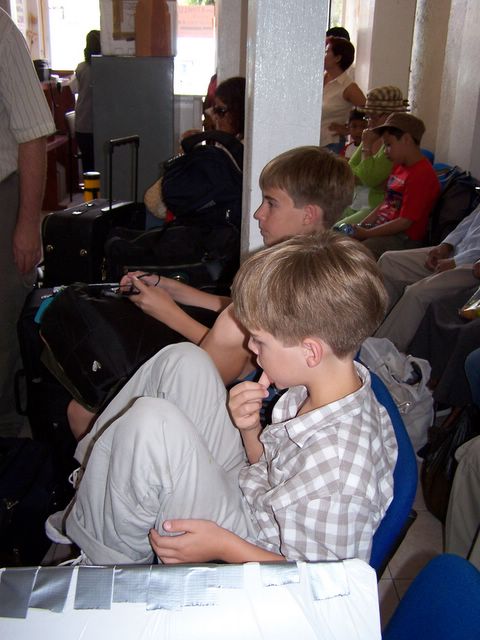 Brian and Daniel waiting at the bus station in Huajuapan.