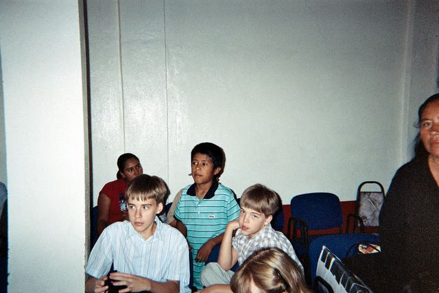 Brian, Juan Miguel, and Daniel waiting at the bus station in Huajuapan.