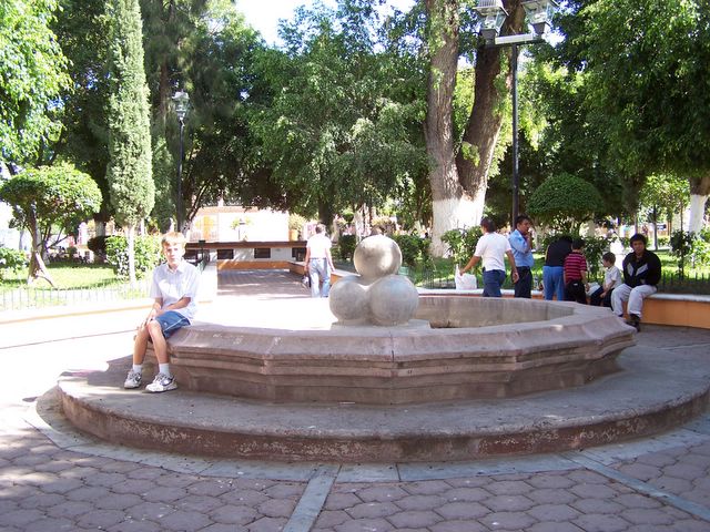 Brian sitting on a fountain at the zocalo in Huajuapan.