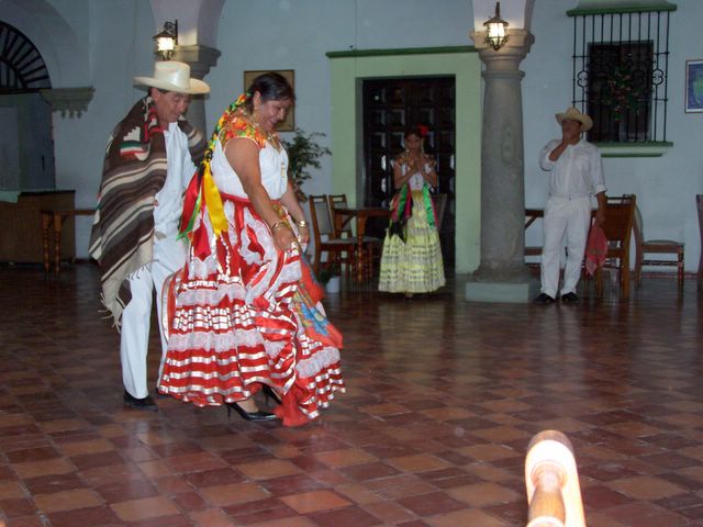 Guelaguetza dancers at the Hotel Monte Albán on the zocalo in Oaxaca City.