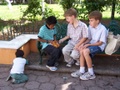 Juan Pablo, Juan Miguel, Daniel, and Brian at the zocalo in Huajuapan. Juan Miguel is wearing the new clothes we bought for him.