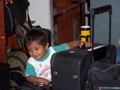 Juan Pablo playing with Todd's suitcase at the bus station in Huajuapan.
